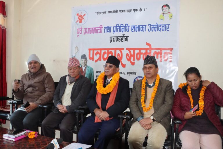 काठमाडौं, ७ माघ । नेपाली कम्युनिष्ट पार्टी (नेकपा) का संयोजक पुष्पकमल दाहाल ‘प्रचण्ड’ ले १० वर्षे जनयुद्धको आधार इलाकाको रुपमा रहेको रुकुम पूर्वलाई अब समाजवादी क्रान्तिको आधार इलाकाको रुपमा विकास गरिने बताएका छन् । आज (बुधबार) आयोजित पत्रकार सम्मेलनलाई सम्बोधन गर्दै संयोजक प्रचण्डले रुकुम पूर्वलाई समाजवादी क्रान्तिको आधार इलाका बनाइने बताएका हुन् ।