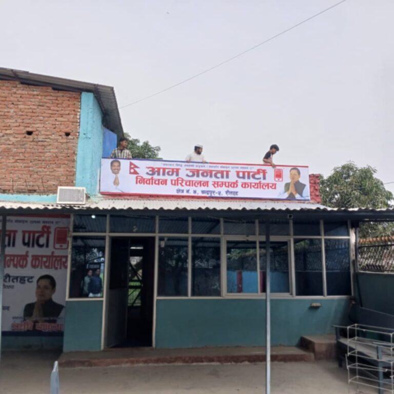 काठमाडौं, ११ माघ । आम जनता पार्टीले निर्वाचन परिचालन सम्पर्क कार्यालय स्थापना गरेको छ । ऋषि धमलाले चुनाव लडेको रौतहट–४ को लागि चन्द्रपुर नगरपालिका–५ को बजारपूर्वमा निर्वाचन परिचालन सम्पर्क कार्यालय स्थापना गरिएको आजपाका कार्यालय सचिव बालकृष्ण सापकोटाले जानकारी दिए ।