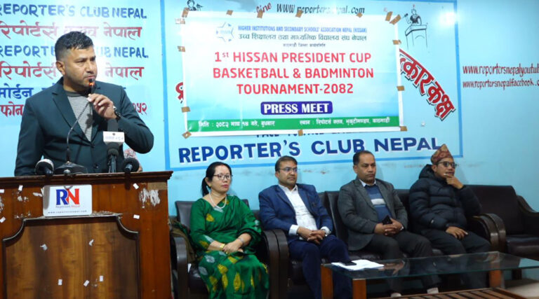 काठमाडौं, १४ माघ । उच्च शिक्षालय तथा माध्यमिक विद्यालय संघ नेपाल (हिसान) ले यही माघ १५ गतेदेखि र १७ गतेसम्म पहिलो हिसान प्रेसिडेन्ट कप बास्केटबल र ब्याडमिन्टन टुर्नामेन्ट–२०८२ को आयोजना गर्ने जानकारी दिएको छ । आज (बुधबार) रिपोर्टर्स क्लब नेपालमा पत्रकार सम्मेलन गर्दै हिसान काठमाडौंले उक्त टुनामेन्टको सम्पूर्ण तयारी पूरा भएको जानकारी गराएको हो ।