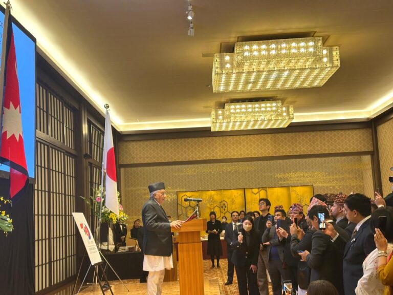 “नेपाल सरकारले व्यापार सहज बनाउन, विदेशी लगानी आकर्षित गर्न र नवप्रवर्तनलाई प्रवद्र्धन गर्न व्यापक कानुनी, प्रक्रियागत र संस्थागत सुधार गरिसकेको छ, हामी उत्पादन, जलविद्युत्, पर्यटन, सेवा, सूचना प्रविधि, खानी र कृषिजस्ता नेपालको प्राथमिकताका क्षेत्रमा लगानी गर्न धेरैभन्दा धेरै जापानी लगानीकर्तालाई आमन्त्रण गर्न चाहन्छौँ,” राष्ट्रपति पौडेलले भने ।