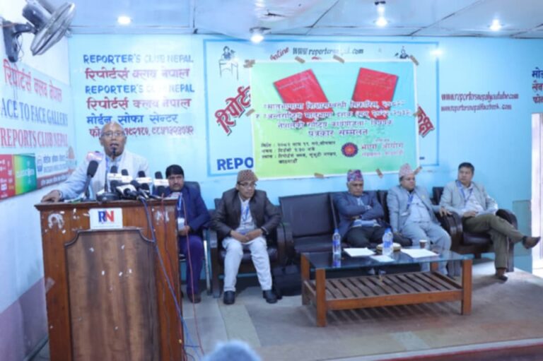 काठमाडौँ, १९ माघ । भाषा आयोगले नेपाल सरकारसमक्ष मातृभाषामा शिक्षासम्बन्धी सिफारिश–२०८२ तथा अन्तर्राष्ट्रिय मातृभाषा दशक (सन् २०२२–२०३२) अन्तर्गत आयोगले तयार पारेको नेपालको राष्ट्रिय कार्ययोजनासम्बन्धी प्रतिवेदन बुझाएको छ । उक्त प्रतिवेदन प्रधानमन्त्री सुशीला कार्कीलाई भेटेरै आज बुझाईएको आयोगले आज रिपोर्टर्स क्लब नेपालमा पत्रकार सम्मेलन गरेर जानकारी गराएको हो ।
