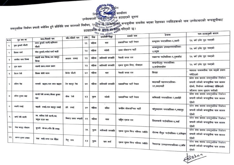 आयोगले समानुपातिकतर्फका ७६ जना उम्मेदवारको नाम बन्दसूचीबाट हटायो, यस्तो छ कारणा…