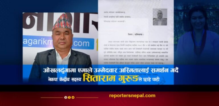 काठमाडौं, २० माघ । नेपाली कम्युनिस्ट पार्टीका केन्द्रीय सदस्य सिताराम गुरुङले पार्टी परित्याग गरेका छन् । उनले नेकपाबाट ओखलढुंगाको उम्मेदवार बनाइएका अम्बिरबाबु गुरुङलाई सहयोग गर्न नसक्ने भन्दै आज (मंगलबार) पदबाट राजीनामा दिएका हुन् ।