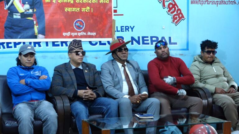 आज (मंगलबार) रिपोर्टर्स क्लब नेपालमा पत्रकार सम्मेलन गर्दै ‘अबको निकास, निर्मल निवास’ मूल नारा बनाएर मोटरसाईकल र्यालीलगायतका कार्यक्रम गर्दै आएको शाही युवा शक्तिले पूर्वराजा शाहलाई काठमाडौं विमानस्थलमा फागुन १ गते भव्य स्वागतको लागि आह्वान गरेको हो ।