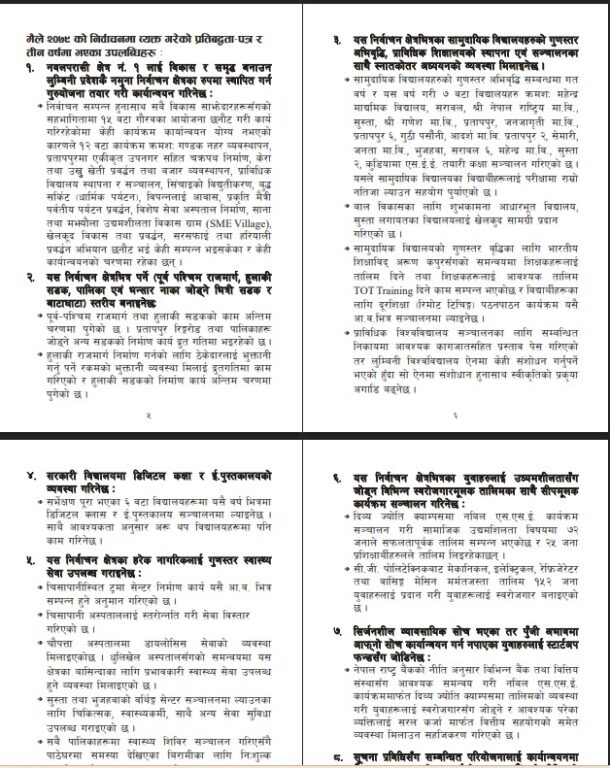 उनले डिजिटल प्रतिसँगै छापिएका प्रतिहरु आफ्नो सचिवालय, कांग्रेस क्षेत्रीय कार्यालय र प्रत्येक पालिका कार्यालय तथा आफ्नो निर्वाचन क्षेत्रका सबै ३४ वटै वडामा रहेका सम्पर्क कार्यालयमा उपलब्ध हुने जनाएका छन् । उनले भनेका छन्,”त्यसैले मैले गत निर्वाचनमा जारी गरेको ३१ बुँदे प्रतिवद्दतापत्रमा एक–एक बुँदाको उत्तर लिएर आएको छु। यसको डिजिटल प्रति यहीँ ९कमेन्टमा० उपलब्ध छ भने छापिएको प्रति मेरो सचिवालय, नेपाली कांग्रेसको क्षेत्रीय कार्यालय, प्रत्येक पालिका कार्यालय तथा मेरो निर्वाचन क्षेत्रका सबै ३४ वटै वडामा रहेका सम्पर्क कार्यालयमा उपलब्ध हुनेछ। म विगतप्रती जवाफदेही र भविष्यका योजना लिएर तपाईंको टोलटोलमा आउँदै छु। तपाइँहरुका अमूल्य सुझावलाई शिरोधार्य गर्दै आगामी यात्रा तय गर्नेछु। जय नेपाल!”