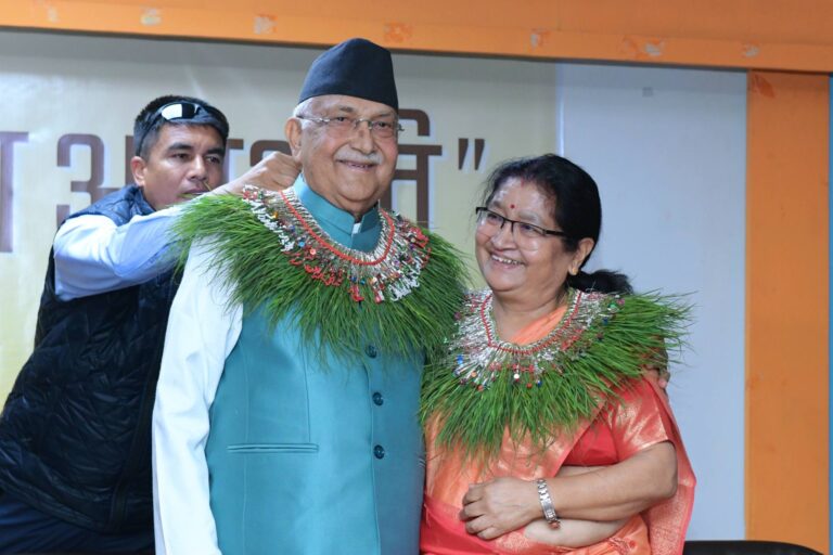 काठमाडौं, १० फागुन । नेकपा (एमाले) का अध्यक्ष तथा पूर्व प्रधानमन्त्री केपी शर्मा ओली र राधिका शाक्यले आफ्नो वैवाहिक वर्षगाँठ मनाएका छन् । चुनावी अभियानमा झापामा नै व्यस्त रहेका ओलीले आज ३८औं वर्षगाँठ मनाएका हुन् ।
