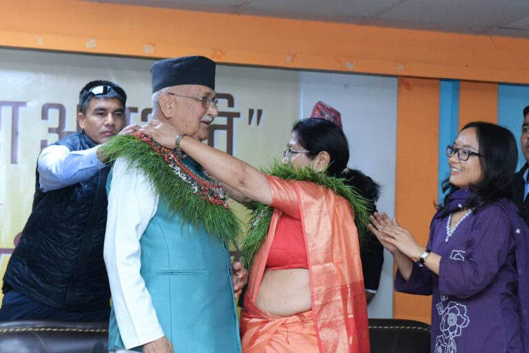 काठमाडौं, १० फागुन । नेकपा (एमाले) का अध्यक्ष तथा पूर्व प्रधानमन्त्री केपी शर्मा ओली र राधिका शाक्यले आफ्नो वैवाहिक वर्षगाँठ मनाएका छन् । चुनावी अभियानमा झापामा नै व्यस्त रहेका ओलीले आज ३८औं वर्षगाँठ मनाएका हुन् ।