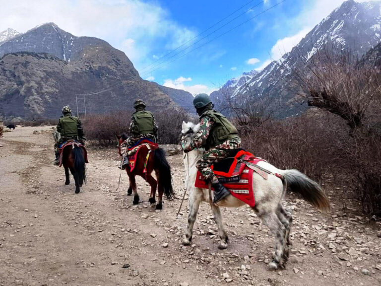 काँक्रेविहार (सुर्खेत), ११ फागुन । यही फागुन २१ गतेको चुनावलाई लक्षित गरेर हिउँले ढाकिएको उपल्लो डोल्पाको तीन पालिकामा नेपाली सेनाले घोडाबाट गस्ती सुरु गरेको छ । अक्सिजनको कमी हुनाका साथै हिउँले बाटो नै अवरुद्ध भएको उपल्लो डोल्पामा घोडाको प्रयोग गरेर सुरक्षा गस्ती सुरु भएको हो ।