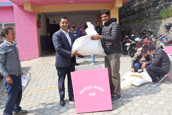 निर्वाचनका लागि आबश्यक पर्ने मतपत्र मुख्य निर्वाचन अधिकृतको कार्यालयबाट र अन्य ५१ प्रकारका सामाग्री जिल्ला निर्वाचन कार्यालयबाट मतदान अधिकृतलाई बुझाइएको छ ।