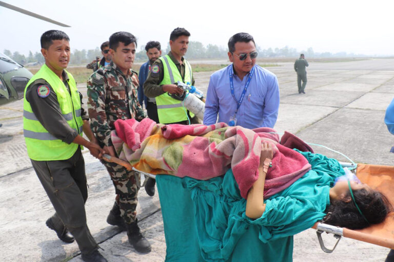 महिला, बालबालिका तथा ज्येष्ठ नागरिक मन्त्रालयद्वारा सञ्चालित राष्ट्रिय महिला सशक्तीकरण परियोजना अन्तर्गत रहेको गर्भवती तथा सुत्केरी महिलाका लागि हवाई उद्धार कार्यक्रम मार्फत नेपाली सेनाको हवाई साधन प्रयोगगरी गर्भवती महिलालाई जुम्लाबाट सुरक्षित रूपमा उद्धार गरी थप उपचारका लागि सुर्खेत पुर्याइएको हो।