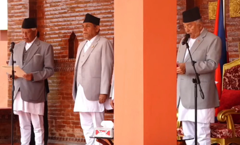काठमाडौं, चैत ११ । प्रतिनिधि सभाका सबैभन्दा ज्येष्ठ सदस्य नेपाली काँग्रेसका नेता अर्जुननरसिंह केसीले पद तथा गोपनियताको शपथ लिएका छन् । उनले शीतल निवासमा राष्ट्रपति रामचन्द्र पौडेलबाट एक समारोहकाबीच सांसदको पद तथा गोपनियताको शपथ लिन लिएका हुन् ।