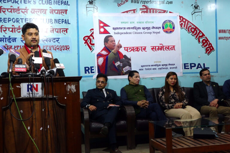 काठमाडौं, १३ चैत्र । ऋषि धमलाको नेतृत्वमा ५१ सदस्यीय स्वतन्त्र नागरिक समूह नेपाल घोषणा गरिएको छ । ‘समयमा काम, तत्काल परिणाम’ मूल नारा दिएर यो समूह घोषणा गरिएको हो । आज (शुक्रबार) रिपोर्टर्स क्लब नेपालमा पत्रकार सम्मेलन गरेर उक्त समूहको घोषणा गरिएको छ । यसको अध्यक्ष ऋषि धमला र सचिवमा भने हेमराज अधिकारी रहेका छन् । यो समूहले बालेन शाह नेतृत्वको वर्तमान सरकारलाई सहयोग गर्ने घोषणा गरेको छ। नयाँ सरकारसँग मिलेर काम गर्ने भनेर अभियानले ३१ बुँदामा समेटेर सहयात्रापत्र पनि तयार पारेको छ ।