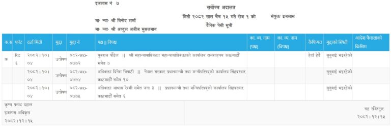 सर्वोच्च अदालतका न्यायाधीशद्वय विनोद शर्मा र अब्दुल अजीज मुसलमानको संयुक्त इजलासमा सो मुद्दाको सुनुवाई भइरहेको छ । यो मुद्दामा सुनुवाई सकिए आजै फैसला आउनसक्ने भनिएको छ ।