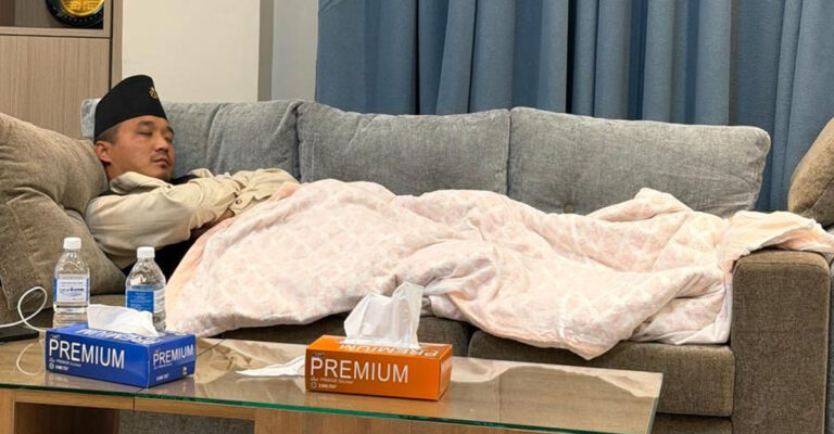 काठमाडौं, चैत २० । बिहीबार बेलुकी अबेरसम्म त्रिभुवन अन्तर्राष्ट्रिय विमानस्थल निरीक्षणमा गएका गृहमन्त्री सुधन गुरुङ राती गृह मन्त्रालयको आफ्नै कार्यकक्षको सोफामै सुतेका छन्। विमानस्थलको निरीक्षण गरेर सिनामंगलस्थित केएमसी अस्पतालमा रहेका जनआन्दोलनका घाइतेको स्वास्थ्य अवस्थाबारे बुझेर मध्यरातमा सिंहदरबार पुगेका गृहमन्त्री गुरुङ कार्यालयको सोफामै सुतेका हुन् । उनले मन्त्रालयको सिरक ओढेर सुतेको फोटो आफैं समाजिक सञ्जालमार्फत सेयर गरेका छन् ।