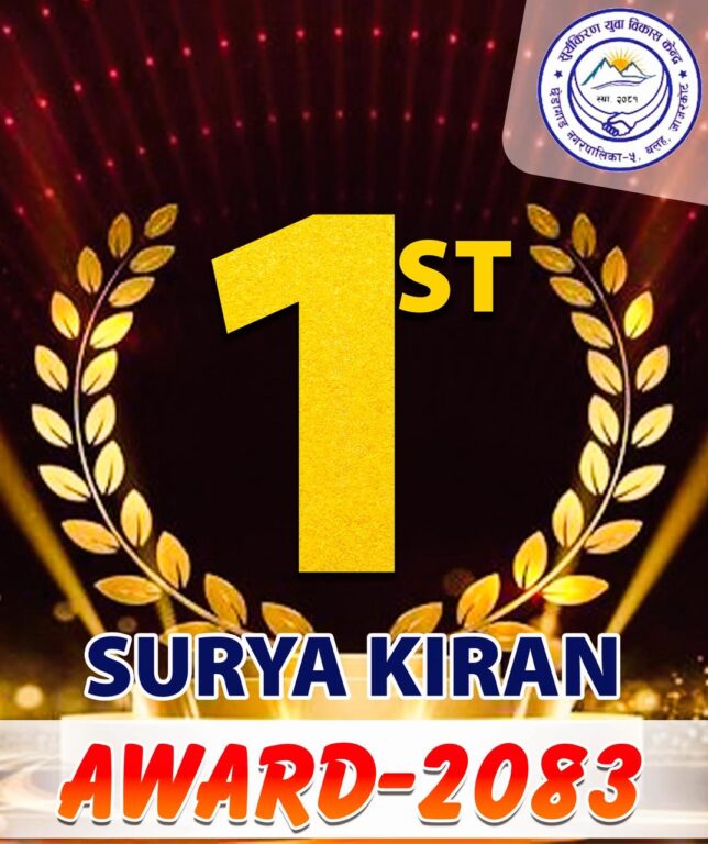 अवार्ड प्रदान गरिने कार्यक्रममा उपस्थितिका लागि सूर्यकिरण युवा विकास केन्द्रले निमन्त्रणा गरेको छ । छेडागाड नगरपालिका वडा नं. १२ कार्कीगाउँ जाजरकोटमा कार्यक्रम आयोजना गरिएको हो ।