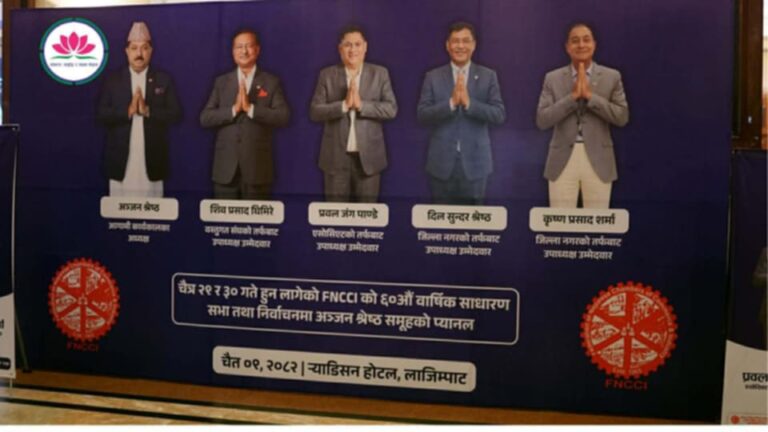 काठमाडौँ, २५ चैत । नेपाल उद्योग वाणिज्य महासंघ (एफएनसीसीआई) को ५८ औँ वार्षिक साधारणसभाको मिति नजिकिँदै गर्दा टेकुस्थित महासंघ सचिवालय र होटलका ‘लबी’हरूमा चुनावी अंकगणित सुरु भइसकेको छ। यसपटकको निर्वाचनमा एसोसिएट उपाध्यक्ष पदका लागि लोमस ग्रुपका सञ्चालक एवं सिटिजन्स बैंकका अध्यक्ष प्रबलजंग पाण्डेले आफ्नो सशक्त दाबेदारी प्रस्तुत गरेका छन्।