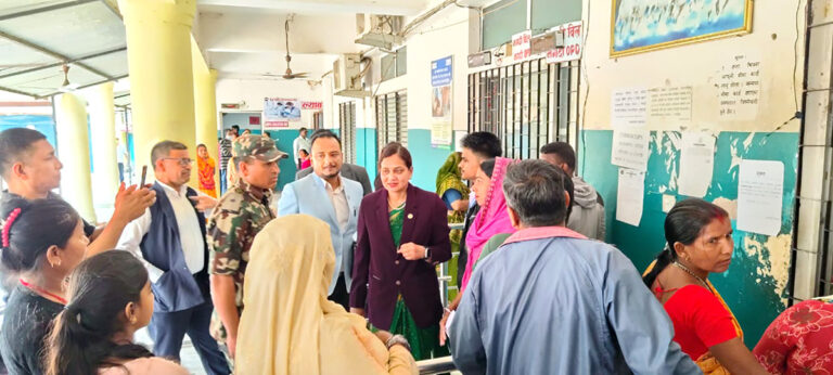 इनरुवा (सुनसरी), २५ चैत । स्वास्थ्य तथा जनसङ्ख्या तथा खानेपानी मन्त्री निशा मेहताले यहाँस्थित जिल्ला अस्पतालको निरीक्षण गरेर सेवा प्रवाहबारे जानकारी लिएकी छिन् ।