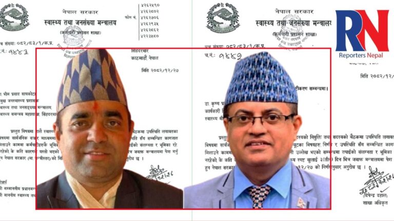 काठमाडौं । स्वास्थ्य तथा जनसंख्या मन्त्रालयले प्रमुख जनस्वास्थ्य प्रशासक डा. भीमप्रसाद सापकोटा र स्वास्थ्य बीमा बोर्डका कार्यकारी निर्देशक डा.कृष्णप्रसाद पौडेललाई स्पष्टीकरण सोधेको छ । उनीहरुलाई स्वास्थ्य बीमा बोर्डको सदस्य नियुक्तिका विषयमा स्पष्टीकरण सोधेको हो ।