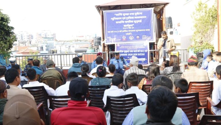 पञ्चकुमारी समाज, सिनामङ्गल काठमाडौँको आयोजना तथा प्रहरी वृत्त गौशाला र ट्राफिक प्रहरी प्रभाग एयरपोर्टको सहकार्यमा आयोजित ‘सभ्य नागरिकको चिनारी, सडक दुर्घटना न्यूनीकरण हामी सबैको जिम्मेवारी’ विषयक नागरिक सुनुवाइ तथा नयाँवर्ष २०८३ को शुभकामना आदानप्रदान कार्यक्रम सम्पन्न गरिएको हो ।