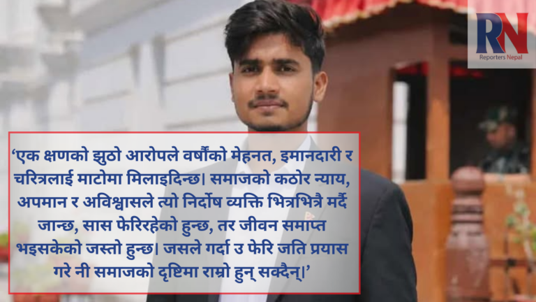 त्यस्तो आरोपले केवल एक व्यक्तिलाई मात्र होइन्,उसको सम्पूर्ण परिवारलाई समेत ध्वस्त बनाइदिन्छ। बुबाआमा लाजले शिर झुकाउन बाध्य हुन्छन्, दाजुभाइ, दिदीबहिनी समाजको तिखो टिप्पणी सहन बाध्य हुन्छन् । श्रीमान् – श्रीमतीको सम्बन्ध टुट्छ, बालबालिकाको भविष्य अन्धकारमा धकेलिन्छ। एक क्षणको झुठो आरोपले वर्षौंको मेहनत, इमानदारी र चरित्रलाई माटोमा मिलाइदिन्छ। समाजको कठोर न्याय, अपमान र अविश्वासले त्यो निर्दोष व्यक्ति भित्रभित्रै मर्दै जान्छ, सास फेरिरहेको हुन्छ, तर जीवन समाप्त भइसकेको जस्तो हुन्छ। जसले गर्दा उ फेरि जति प्रयास गरे नी समाजको दृष्टिमा राम्रो हुन् सक्दैन्।