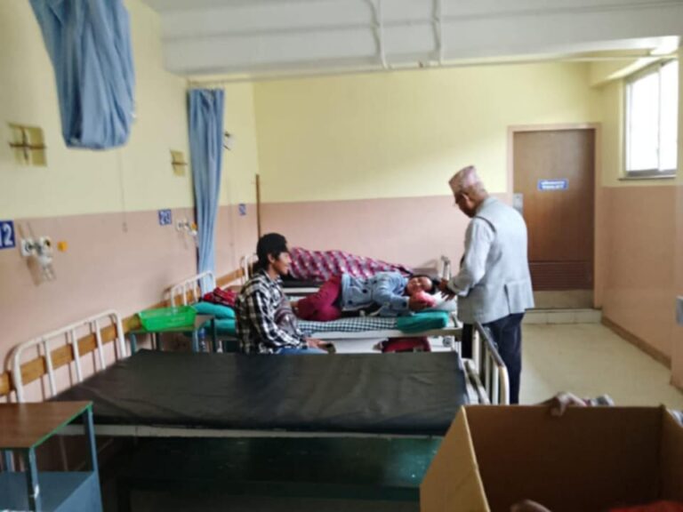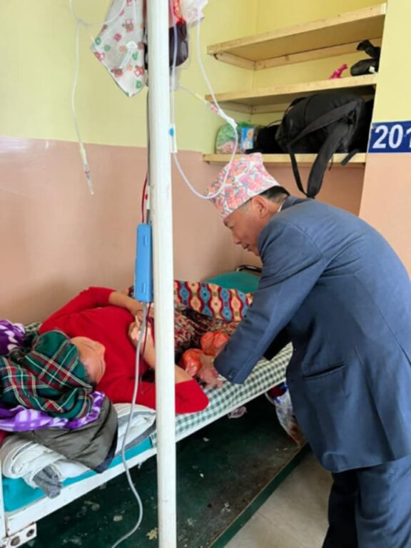 बिरामीहरूलाई फलफूल वितरण गर्ने क्रममा एमालेका पूर्व जिल्ला कमिटी अध्यक्ष शंकर कटवाल, प्रदेश सल्लाहकार तथा सिद्धिचरण नगरपालिकाका उपप्रमुख केदारबाबु बस्नेत, कार्यालय सचिव एवं जिल्ला कमिटी सदस्य कृष्णबहादुर कार्की, जिल्ला कमिटी सदस्य डिबी गुरुङ र सुनकोशी गाउँपालिका- १० का वडा सदस्य भूपाल खत्री लगायतको उपस्थिति रहेको थियो।