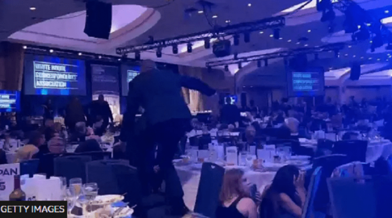 अमेरिकी गोप्य सेवाले तुरुन्तै प्रतिक्रिया दियो, राष्ट्रपति डोनाल्ड ट्रम्प र मेलानिया ट्रम्पलाई सुरक्षित रूपमा बाहिर निकालियो । हलमा रहेका धेरै मानिसहरू टेबलमुनि लुके, जबकि अरू भुइँमा पल्टिए ।