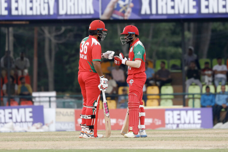 काठमाडौँ, १६ वैशाख । आईसीसी विश्वकप क्रिकेट लिग–२ अन्तर्गत आज भएको खेलमा ओमानले नेपाललाई जितको लागि ३०६ रनको बलियो लक्ष्य दिएको छ ।