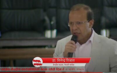 काठमाडौं,७ साउन । नेपाली कांग्रेसका केन्द्रीय सदस्य डा. मिनेन्द्र रिजालले पार्टीका महामन्त्री गगनकुमार थापालाई संसदीय