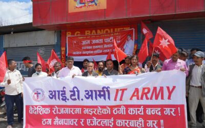 काठमाडौं, २२ असार । आम जनता पार्टीको भातृ संगठन आईटी आर्मीले शुक्रबार काठमाडौंमा प्रदर्शन गरेको