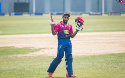 काठमाडौं,१७ असार । आईसीसी विश्वकपको छनोटअन्तर्गत प्लेअफको खेलमा यूएईले दिएको १८२ रनको लक्ष्य पछयाएको नेपाललाई