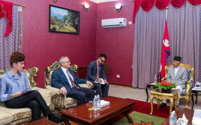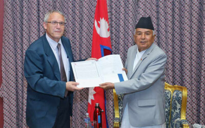 काठमाडौं,२६ भदौ । राष्ट्रपति रामचन्द्र पौडेलसँग इजरायलका राजदूत हानन गोदर गोल्डबर्गरले शिष्टाचार भेट गरेका छन्