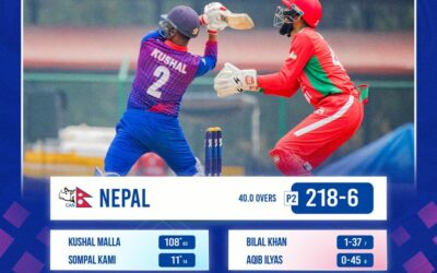 काठमाडौं,८ वैशाख । एसीसी प्रिमियर लिग अन्तर्गत जारी खेलमा ओमानविरुद्ध निक्कै संघर्ष गरिरहेको नेपालले दुई