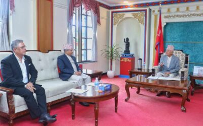 काठमाडौं,८ भदौ । राष्ट्र बैंकका गभर्नर महाप्रसाद अधिकारी र राष्ट्रपति रामचन्द्र पौडेलबीच भेटवार्ता भएको छ