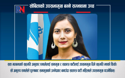 काठमाडौं । राष्ट्रिय स्वतन्त्र पार्टीबाट प्रतिनिधि सभामा निर्वाचित भएकी सांसद् सोबिता गौतम उपसभामुख बन्ने सम्भावना