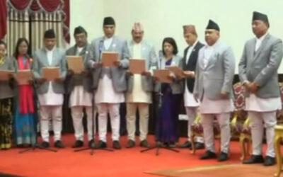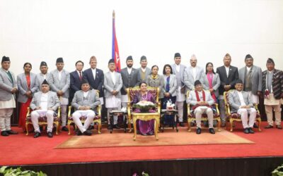 काठमाडौं । नवनियुक्त मन्त्रीहरुले शपथग्रहण गरेका छन्। उनीहरुलाई राष्ट्रपति विद्यादेवी भण्डारीले शपथ गराएकी हुन्। सत्ता