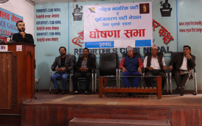 काठमाडौं, १६ असोज । राष्ट्रिय नागरिक पार्टी र पुर्नजागरण पार्टी नेपालबीच चुनावी एकता घोषणा भएको