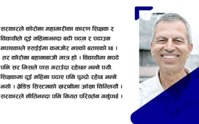 काठमाडौं, १२ साउन । शिक्षाविद् विद्यानाथ कोइरालाले सिकाइ उपलब्धिमा सुधारका लागि सरकारी ‘नीति’भन्दा पनि ‘नियत’