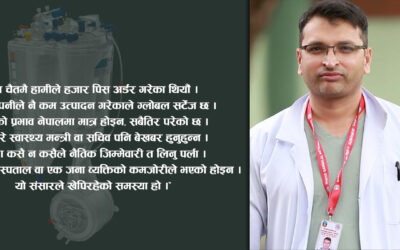 सहिद गंगालाल राष्ट्रिय हृदयरोग अस्पतालका निर्देशक डा. चन्द्रमणि अधिकारीले वयस्कको मुटुको शल्यक्रियाका लागि आवश्यक अक्सिजेनेटर