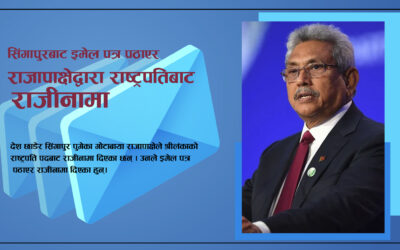 एजेन्सी, ३१ असार । देश छाडेर सिंगापुर पुगेका गोटाबाया राजापाक्षेले श्रीलंकाको राष्ट्रपति पदबाट राजीनामा दिएका