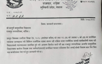 काठमाडौं, ११ जेठ । राजापुर नगरपालिकाका मेयर दिपेश थारुले पदबहाली गरेलगत्तै महत्वपूर्ण कदम चालेका छन्