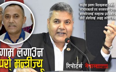 असार २६, काठमाण्डौ । नेपाली कांग्रेसका प्रवक्ता विश्वप्रकाश शर्माले सञ्चारमन्त्री एवं सरकारका प्रवक्ता गोकुल बाँस्कोटाको