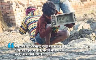 जेठ २९, काठमाण्डौ । हरेक वर्ष जुन १२ तारिखमा विश्वभर मनाइदै आएको बालश्रमविरुद्ध दिवस मनाइन्छ