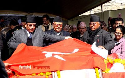 काठमाण्डौ, १९ फागुन । दिवंगत नेता भरतमोहन अधिकारीको पार्थिव शरीरमा प्रधानमन्त्री केपी शर्मा ओली र