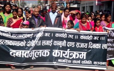 काठमाण्डौ । कञ्चनपुरका महिला अधिकारकर्मी र नागरीक समाज आन्दोलित भएका छन् । निर्मला पन्तको बलात्कार