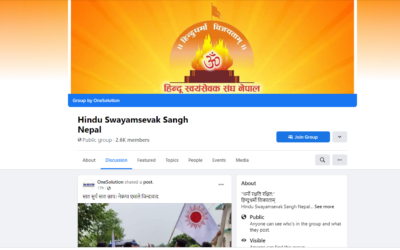 काठमाडौं, २० वैशाख । नेकपा एमालेको भोट माग्न हिन्दू स्वयंसेवक संघ नेपालको नामबाट फेसबुकमा ग्रुप