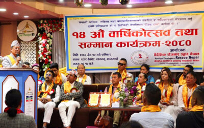 काठमाडौं, जेठ २१ । बैदेशिक रोजगार उद्धार नेपालको १४ औँ बार्षिकोत्सव तथा सम्मान कार्यक्रम सम्पन्न