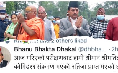काठमाडौं, १९ वैशाख । पर्यटनमन्त्री भानुभक्त ढकाललाई कोरोना भाइरसको संक्रमण भएको छ । उनी लकडाउन