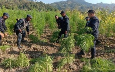 वीरगंज, १७ मंसिर । निजगढ नगरपालिका वडा नं. १२ लालटोलमा तीन बिघामा लगाइएको गाँजा खेती