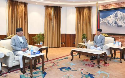 काठमाडौं,१३ मंसिर । प्रधानमन्त्री पुष्पकमल दाहाल प्रचण्ड र राष्ट्रपति रामचन्द्र पौडेलबीच भेटवार्ता भएको छ ।