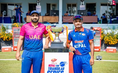 काठमाडौं,१० कार्तिक । नेपालमा जारी त्रिकोणात्मक टी-२० सिरिजअन्तर्गत उपाधिका लागि यूएईविरुद्ध खेलिरहेको नेपालले जितका लागि